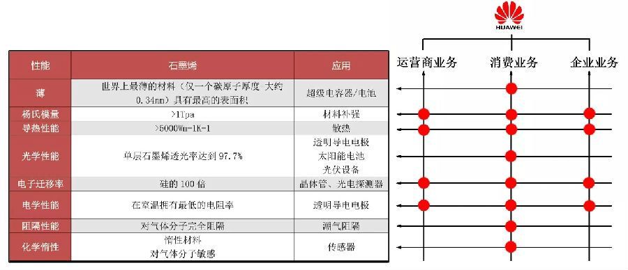 石墨烯材料具有很多奇特的性能,華為從2015年開始進行石墨烯研究,其產(chǎn)品和石墨烯材料的應(yīng)用具有一些相交點。